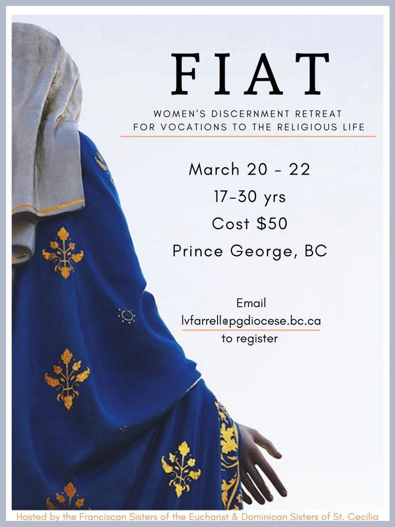 All women ages 17-30 are invited to a vocations retreat hosted by the Franciscan Sisters of the Eucharist and the Dominican Sisters of St. Cecilia.